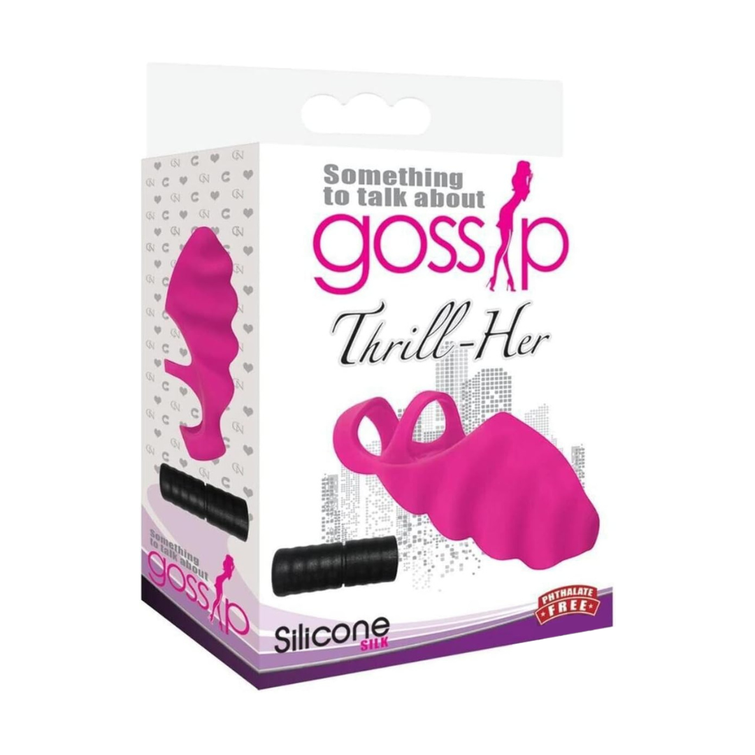 Thrill her es una funda para dedo texturizada, excelente para estimular el punto G, incluye 2 motores de vibración para incrementar aún más el placer.